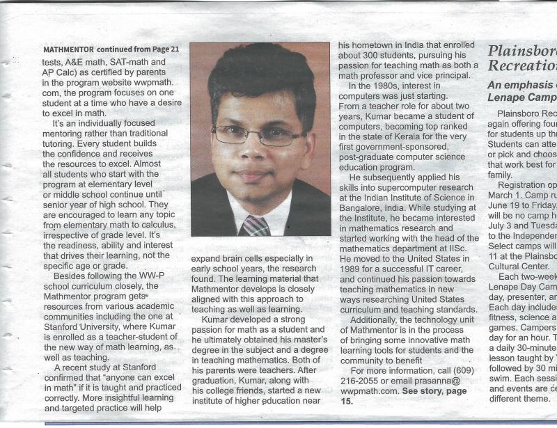 We strive to be a premium resource for math education in the West Windsor - Plainsboro area with programs through out school year and in the summer.
